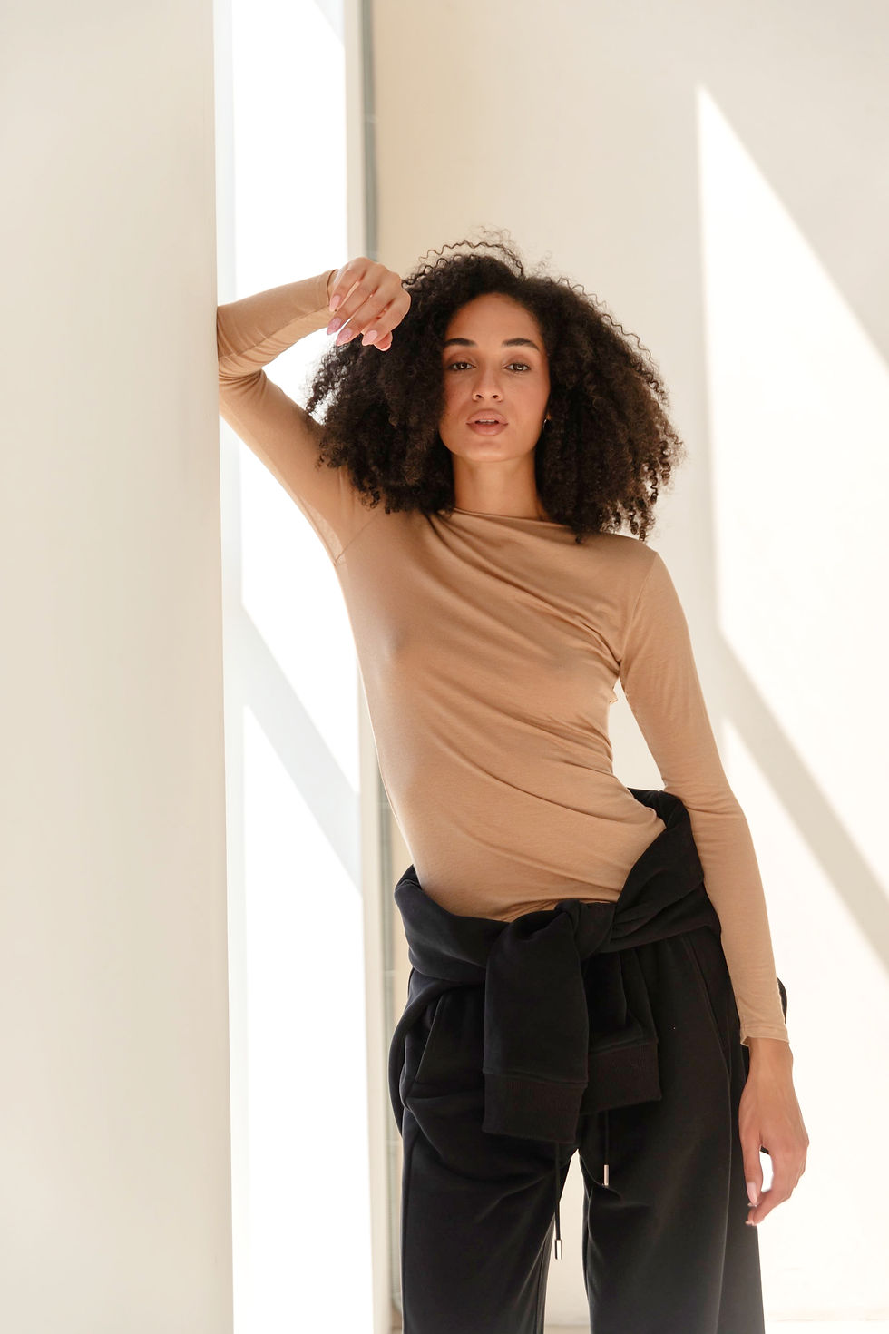 Ультратонкий лонгслів з модалу та кашеміру колір camel